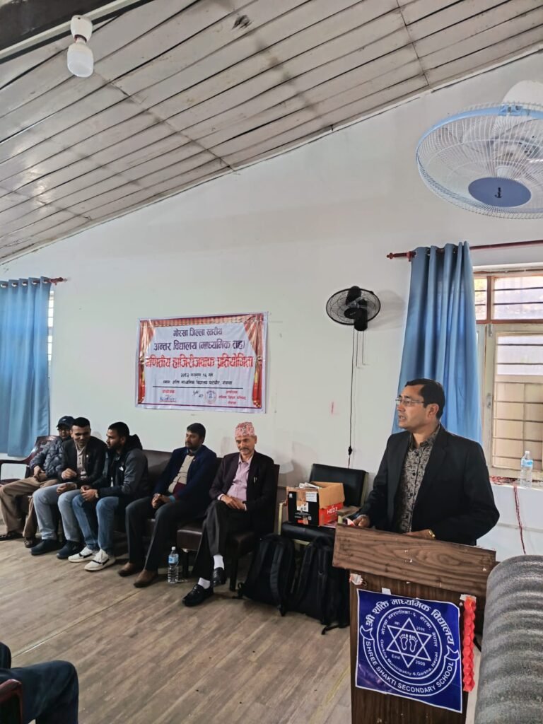 Other speakers including math teacher Lek Prasad Bhattarai, Chief Guest Min Bahadur Nepali, and Special Guest Ved Prasad Sharma also shared their views on the importance of innovative math education.